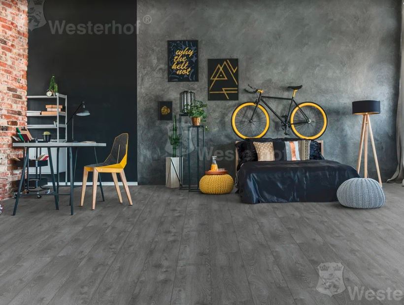 Ламинат "Торос" темно серого цвета для интерьеров в стиле Лофт и Техно.
